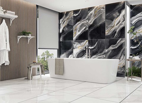 دیوار سرویس بهداشتی: سطحی براق، لوکس و مقاوم در برابر بخار و شویندهها.