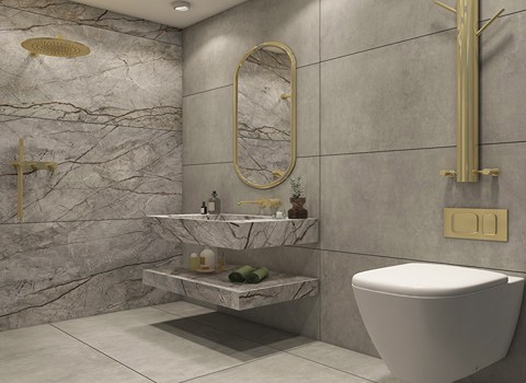 ۱. ایجاد فضایی لوکس و شیک: طراحی مدرن حمامها نیازمند انتخاب مصالحی خاص است.