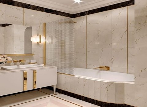 ترکیب رنگ کرم با رگهها و جلوههای طلایی، حس ثبات، آرامش و در عین حال شکوه و تجمل را به محیط منتقل میکند.